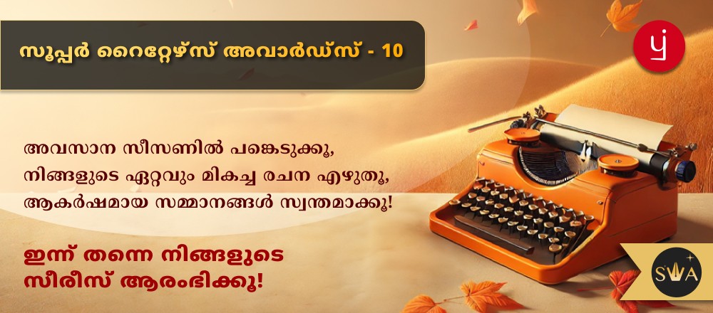 സൂപ്പർ റൈറ്റർ അവാർഡ്സ് ഏറ്റവും അഭിമാനപൂർവ്വമായ അവസാന ഘട്ടത്തിലേക്ക് കടക്കുന്നു. നിങ്ങൾ എഴുതിയ ഓരോ അക്ഷരവും അംഗീകാരത്തിനായി ഇനിയും ഉയരങ്ങളിലേക്ക് പറന്നുയരട്ടെ! കഴിഞ്ഞ 9 സീസണുകളിൽ രചയിതാക്കൾ അതിശയകരമായ കഥകൾ പങ്കുവച്ചു; അതിലൂടെ അവരോടുള്ള വായനക്കാരുടെ സ്നേഹവും, കൂടാതെ അവരുടെ പ്രതിമാസ വരുമാനവും വർദ്ധിച്ചു. ഇപ്പോൾ, നിങ്ങൾക്കും ഈ അവസരം കരസ്ഥമാക്കാം!